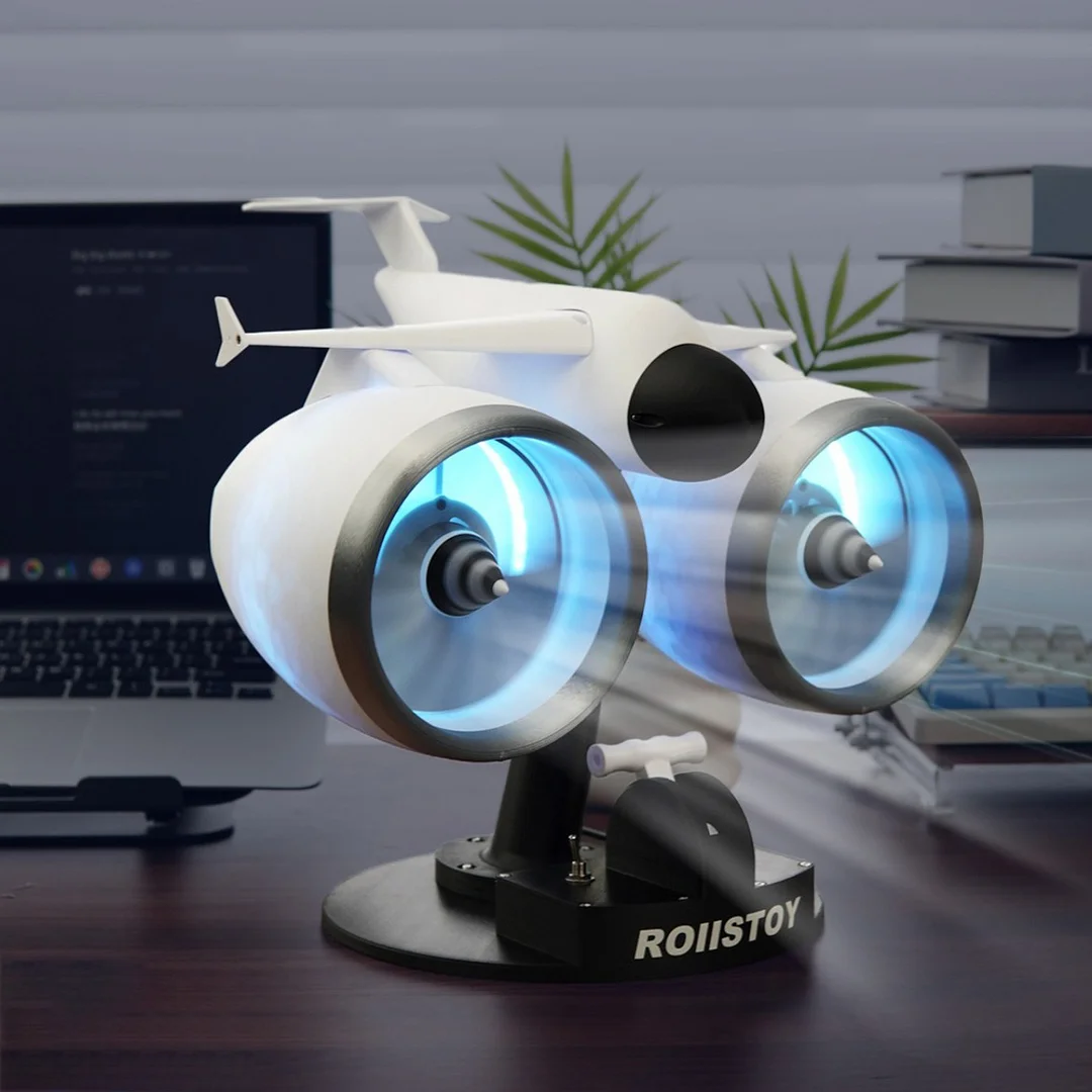 Designed with an aircraft engine, this fan integrates aerospace aesthetics into everyday life. Placed on your desk, it resembles a miniature aircraft, exuding a strong mechanical feel. It's not just a fan, but also a trendy decorative piece.